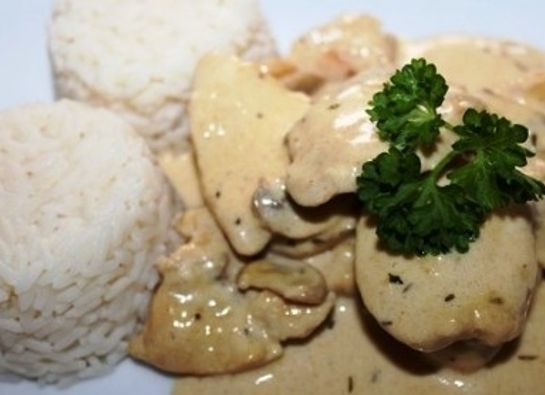 Filetes De Pollo En Salsa De Nata Y Champiñones